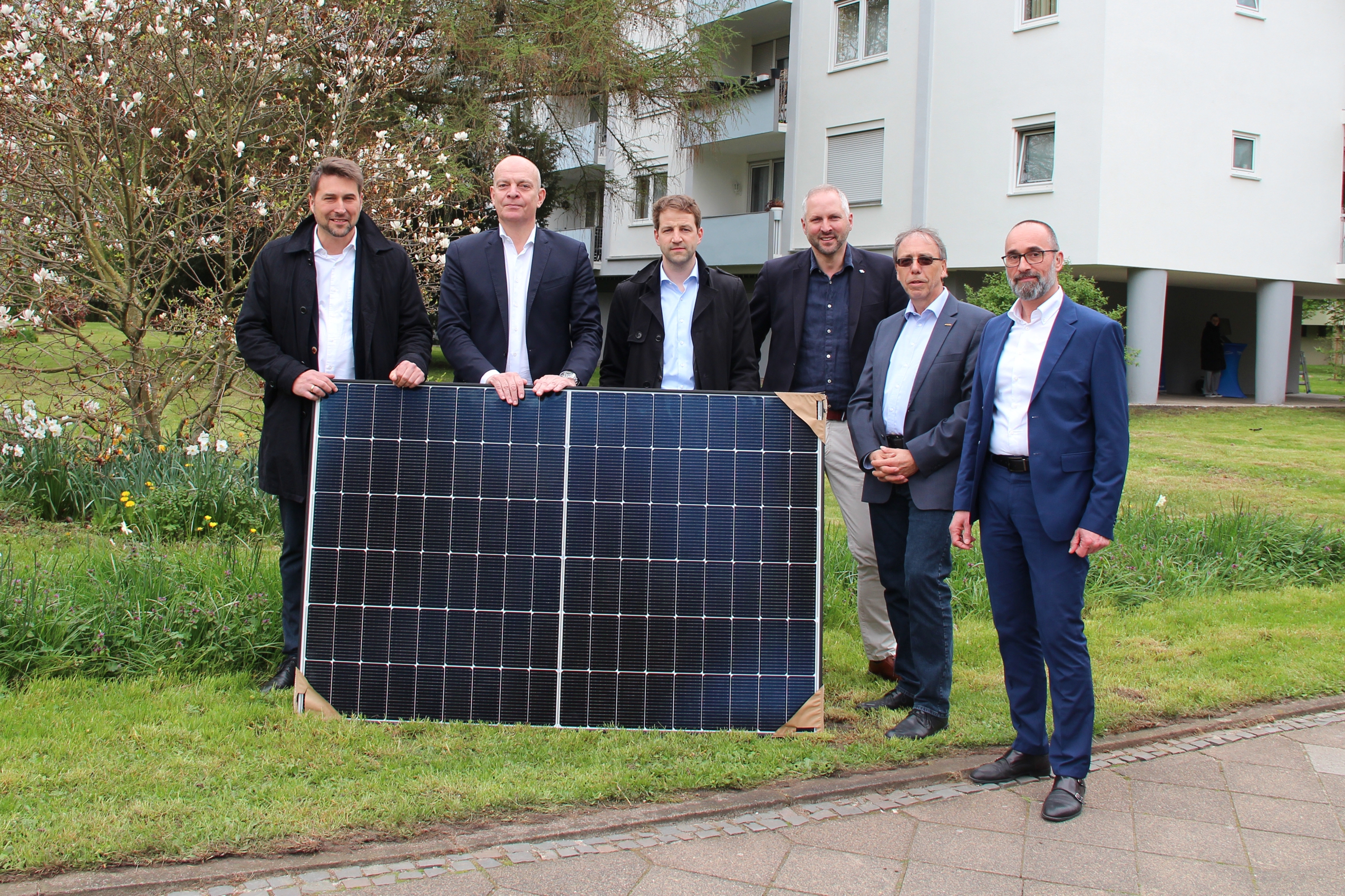 Am vergangenen Mittwoch wurde das erste Mietobjekt in der Bayernstraße Saarbrücken mit einer PV-Anlage und einem Fernwärmeanschluss von Oberbürgermeister Uwe Conradt, den Geschäftsführern der SGS, Robert Tucovic und Dr. Peter Lauer, Martin Kraus, Vorstand der Energie SaarLorLux AG, sowie weiteren beteiligten Unternehmensvertretern offiziell in Betrieb genommen.
