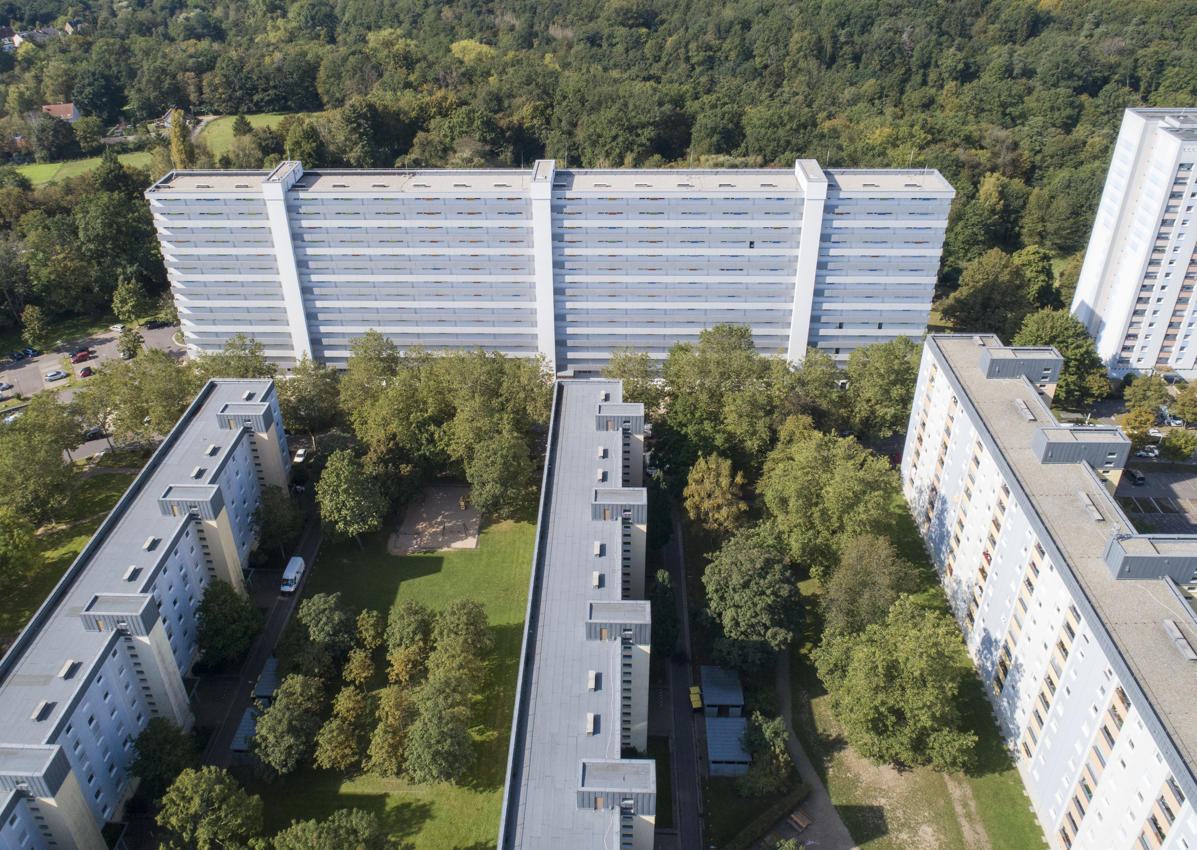 In Zeiten des Klimawandels, der Energiewende und der Notwendigkeit der Einsparung wertvoller Ressourcen wie Platz oder Baustoffe werden Siedlungen wie die Folsterhöhe inzwischen in einem ganz anderen Licht betrachtet: Sie bieten vielen Menschen auf begrenztem Raum ein gutes Zuhause und verursachen einen weitaus geringeren ökologischen Fußabdruck als andere Wohnformen. Eine gute Gelegenheit für die Saarbrücker Siedlungsgesellschaft, die im Quartier vorgenommenen Modernisierungs- und Sanierungsarbeiten mit einem Investitionsvolumen von mehr als 50 Millionen EUR Revue passieren zu lassen.