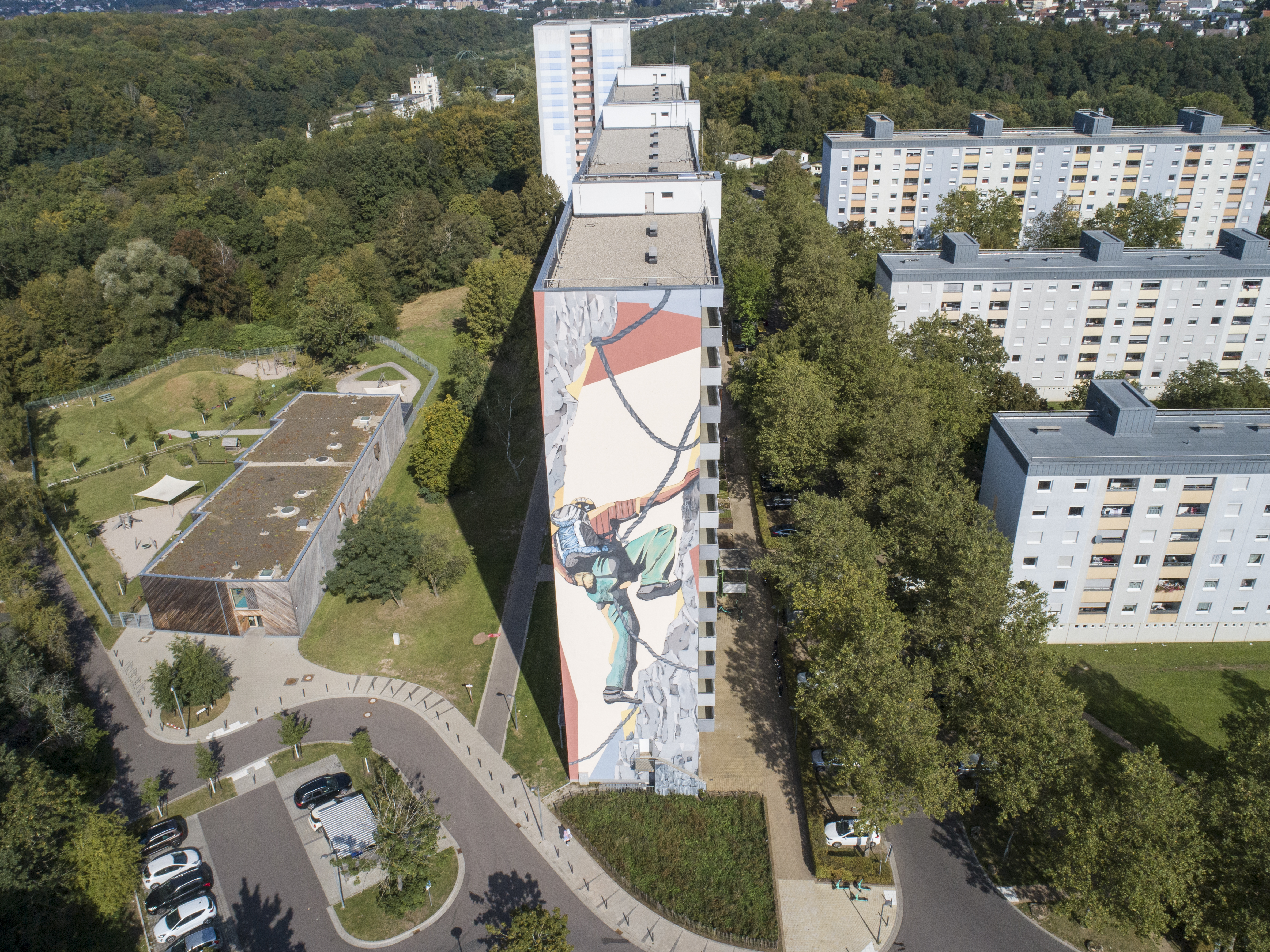 Eins der größten Wohnhaus-Graffitis in Deutschland: Der Bergsteiger am Königsbruch 1image/jpeg - ca. 12,13 MB