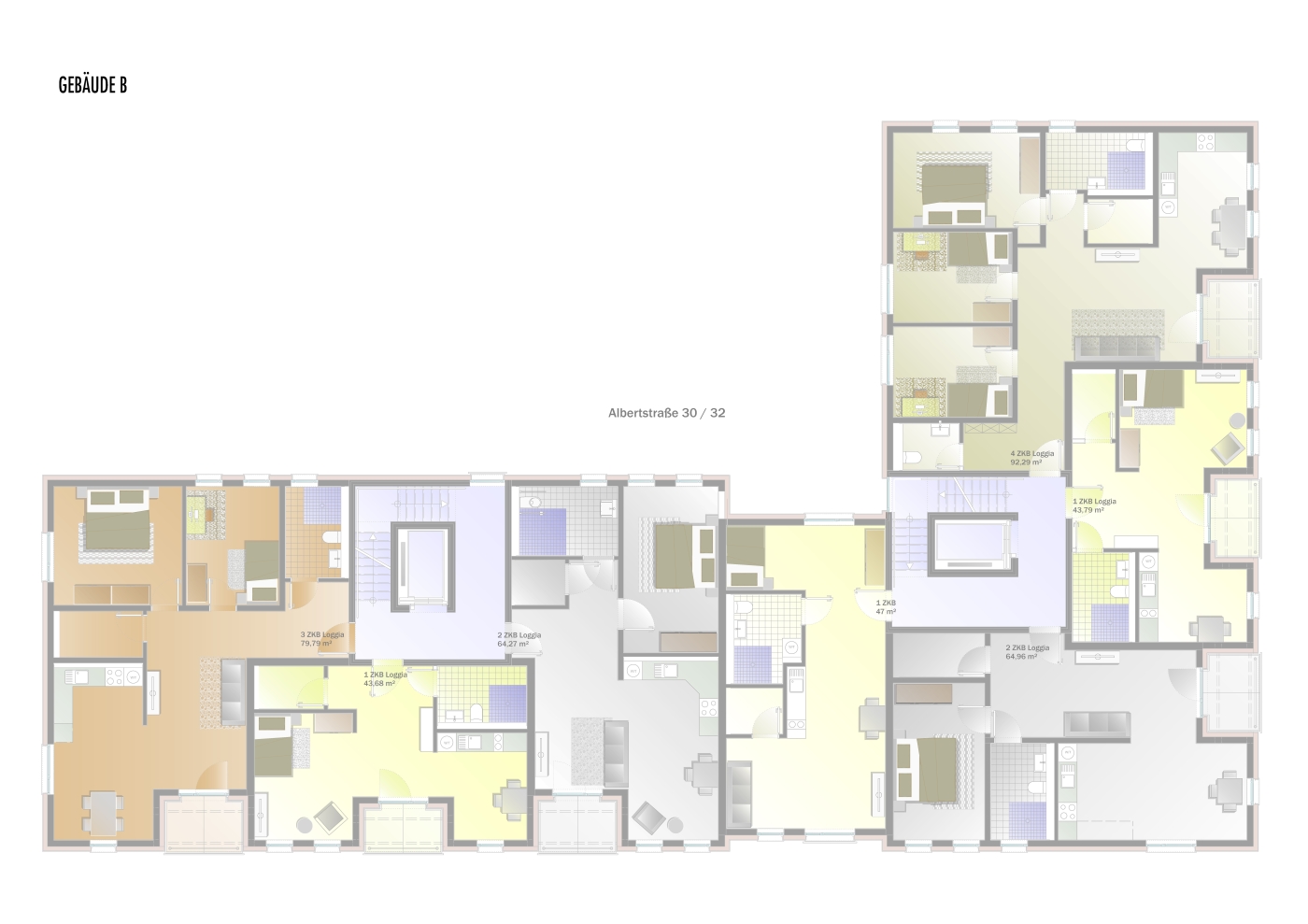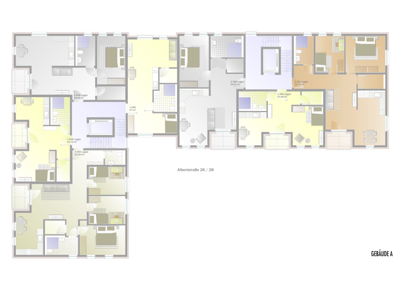 Hier finden Sie die Anordnung der Wohnungstypen auf einer Etage.
